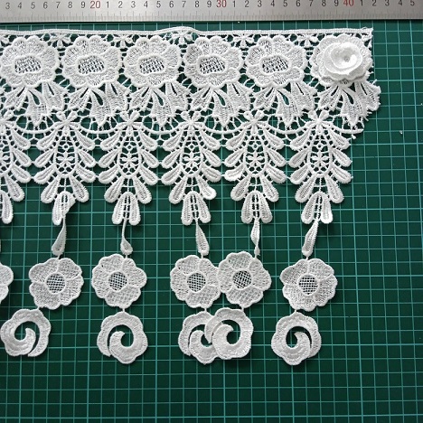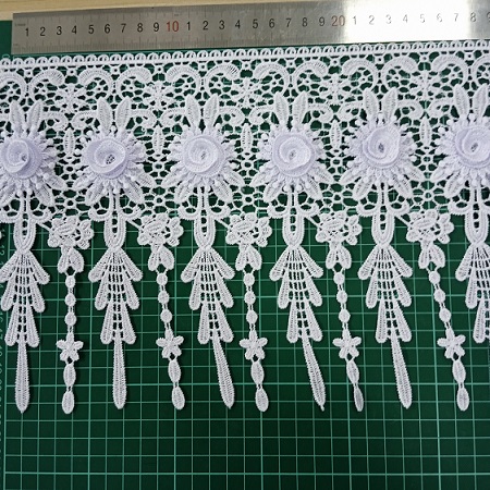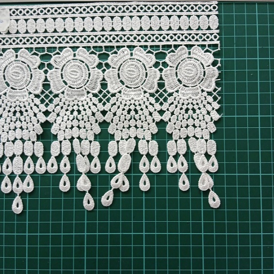 உயர்தர சரிகை துணியின் சமீபத்திய வடிவமைப்பு ஆகும். நீரில் கரையக்கூடிய சரிகை துணி பாலியஸ்டரால் ஆனது, இது ஆடை மற்றும் வீட்டு ஜவுளி பொருட்களில் பயன்படுத்தப்படலாம்.