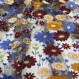 எம்பிராய்டரி ஃபேப்ரிக் டிரெஸ் ஃபேஷன் ஹை-எண்ட் ஃபேப்ரிக் லேஸ் 3டி பல வண்ணம்