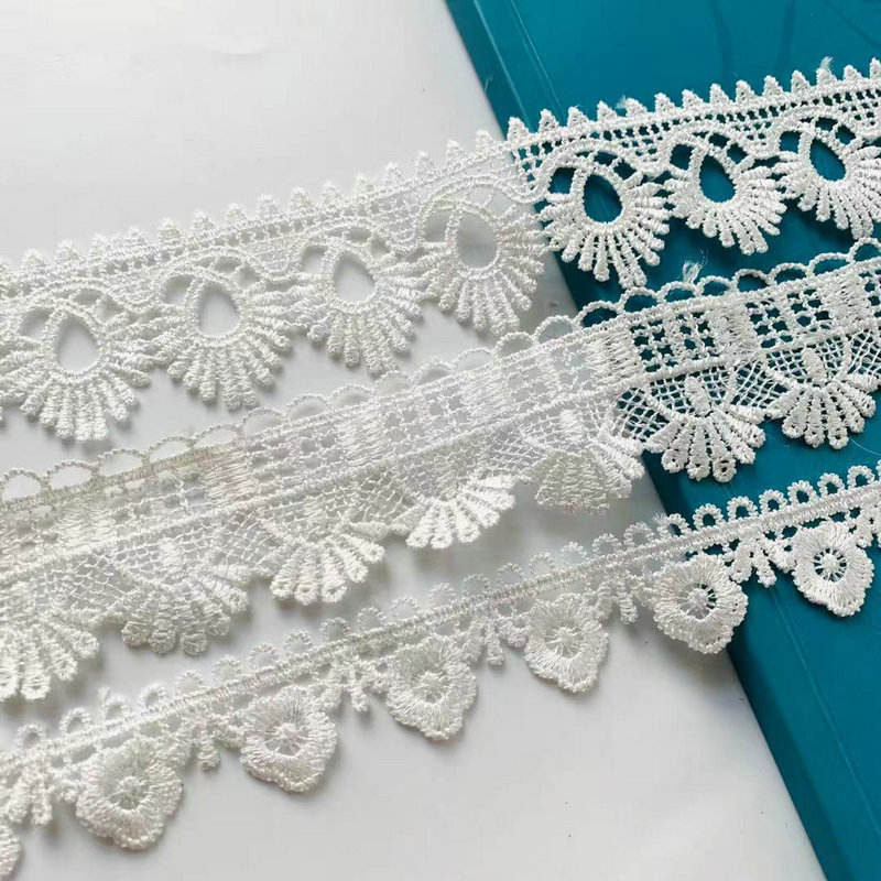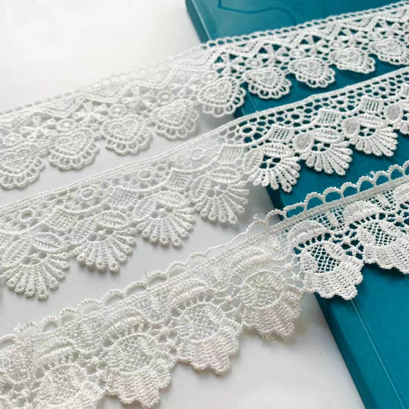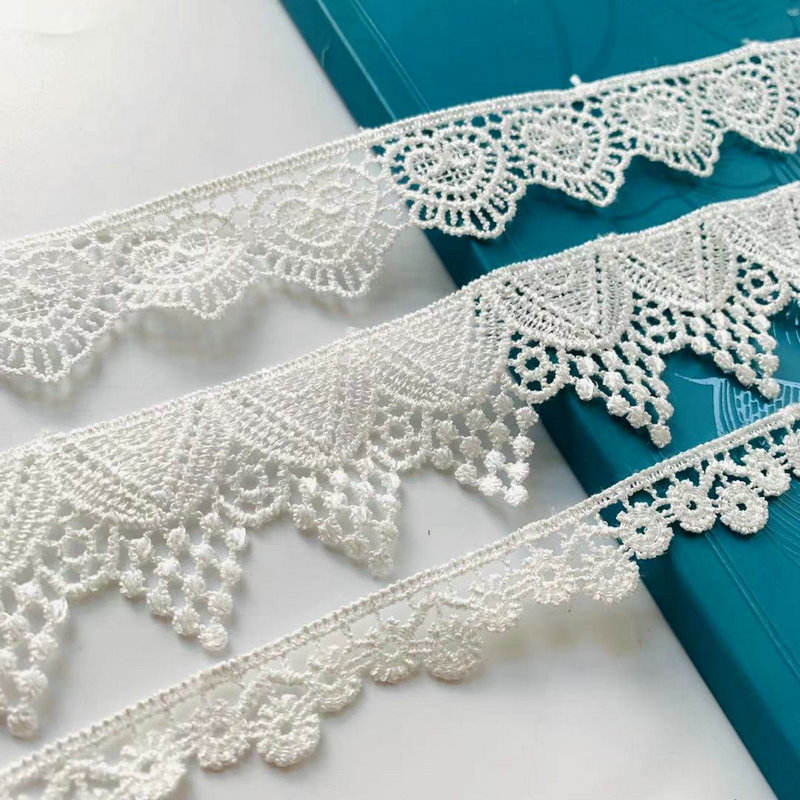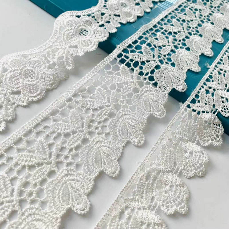 3cm வெள்ளை பால் பட்டு, பாலியஸ்டர் நீரில் கரையக்கூடிய எம்பிராய்டரி சரிகை டிரிம்