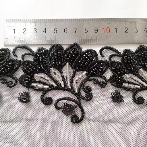 உயர் தரமான 3D மலர் மணிகள் கொண்ட ஜவுளி எம்பிராய்டரி துணி சரிகை அலங்காரம்