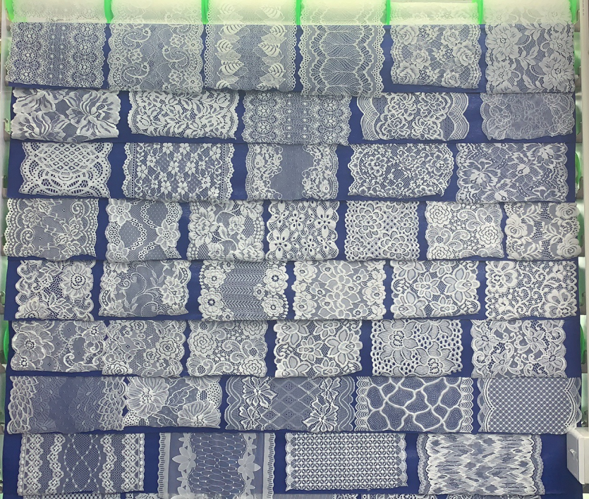 ஹாட் சேல் ஃபேன்ஸி நைலான் ஸ்பான்டெக்ஸ் சரிகை நீட்சி லேஸ் டிரிம் மீள் சரிகை உள்ளாடை மற்றும் உள்ளாடைகளுக்கான உயர்-அலெஸ்டிக் நைலான் ஸ்பான்டெக்ஸ் கலவையான பொருளால் ஆனது, இது மென்மையானது, சுவாசிக்கக்கூடியது மற்றும் சிதைவு இல்லாமல் வலுவான பின்னடைவைக் கொண்டுள்ளது. உள்ளாடைகள், ஷேப்வேர் மற்றும் வயதுவந்த ஆடை போன்ற நெருக்கமான உடைகளுக்கு இது பொருத்தமானது