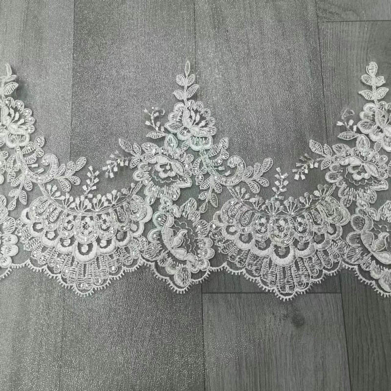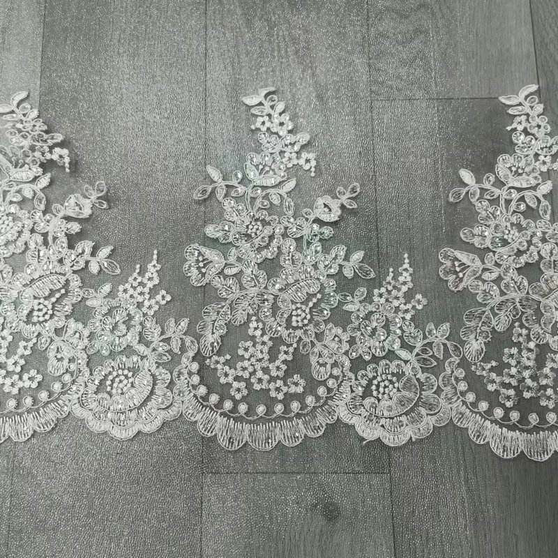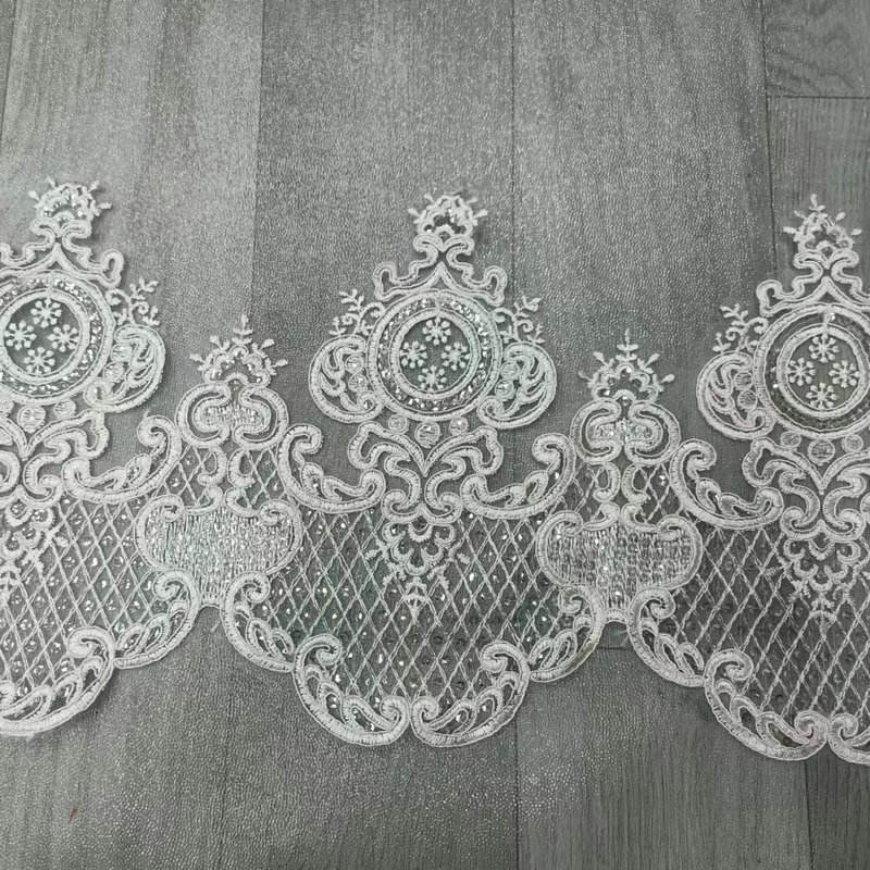 Luxury White Bridal French Lace Embroidered Bridal Lace Trim for Wedding Dress