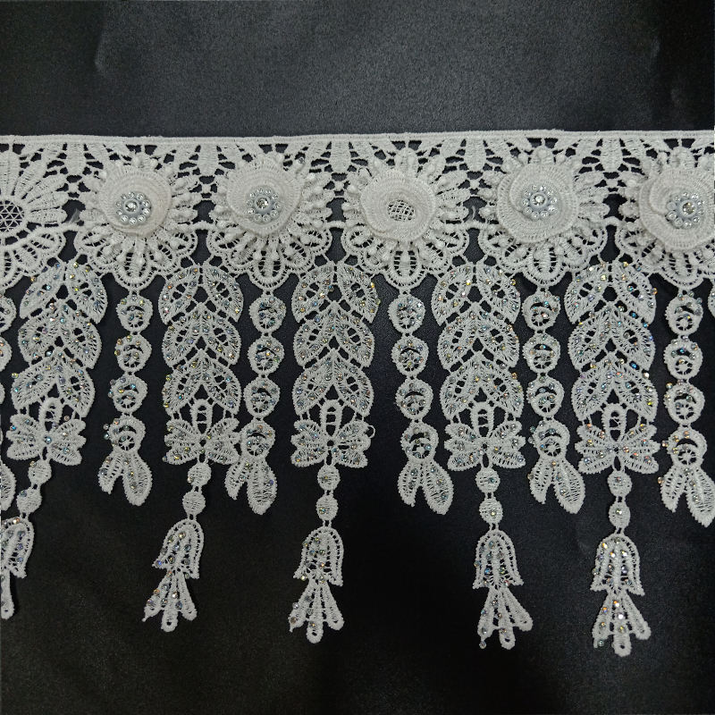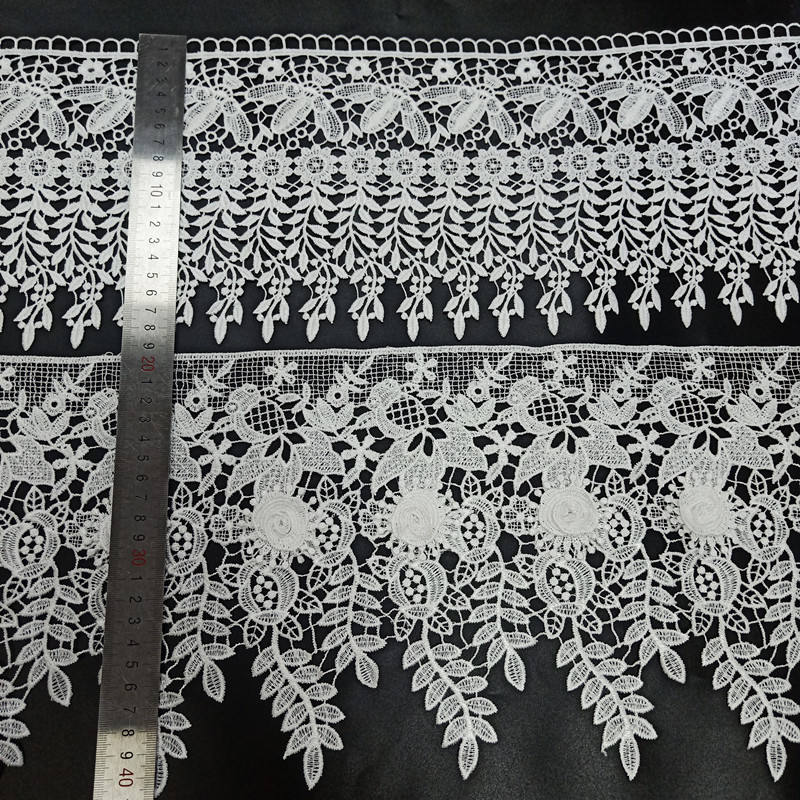 3cm வெள்ளை பால் பட்டு, பாலியஸ்டர் நீரில் கரையக்கூடிய எம்பிராய்டரி சரிகை டிரிம்