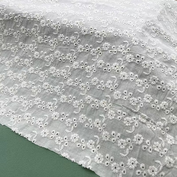 காட்டன் ஐலெட் ஃபேப்ரிக் இன்னும் ஒரு அபிமான வகை உள்ளது. அவை முற்றிலும் அபிமானமாகத் தெரிகின்றன மற்றும் சாதாரண உடைகள் மற்றும் மாலை ஆடைகளை அலங்கரிக்க சிறந்தவை.