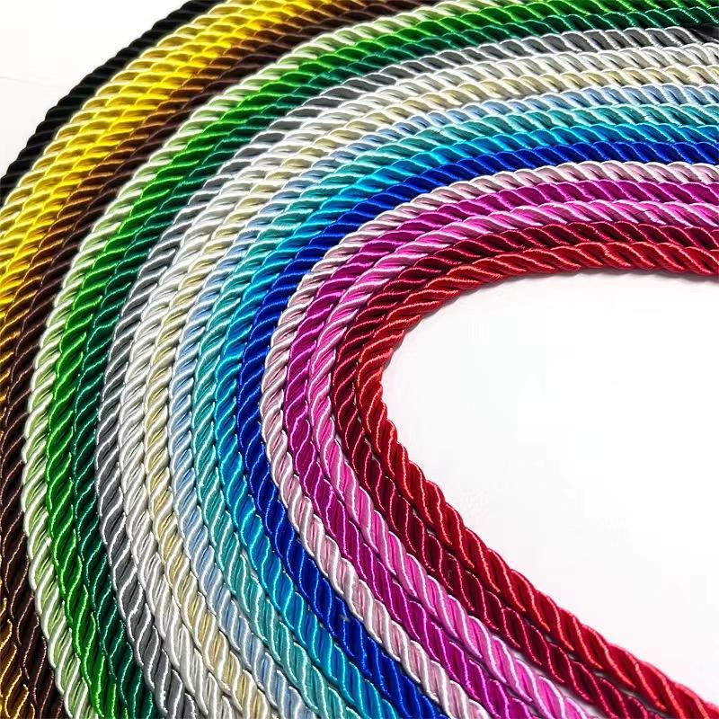 திட நிறம் 7 மிமீ இழைகள் வண்ண பட்டு கயிறு அலங்கார பட்டு கயிறு