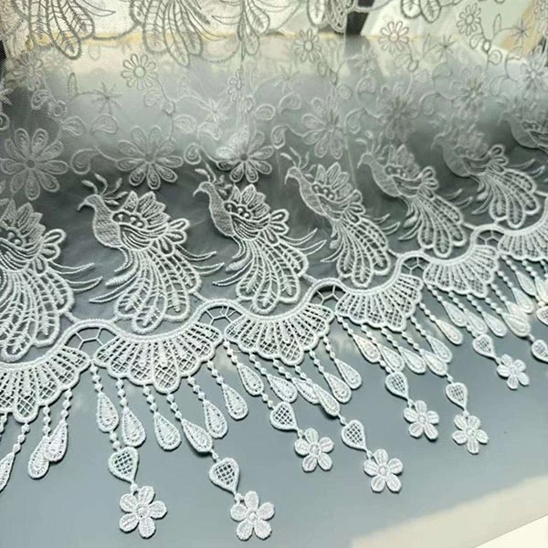 3cm வெள்ளை பால் பட்டு, பாலியஸ்டர் நீரில் கரையக்கூடிய எம்பிராய்டரி சரிகை டிரிம்