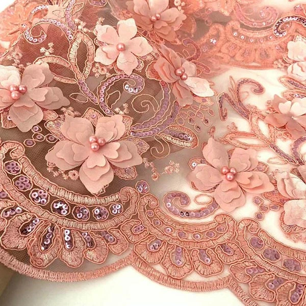 உயர் தரமான 3D மலர் மணிகள் கொண்ட ஜவுளி எம்பிராய்டரி துணி சரிகை அலங்காரம்