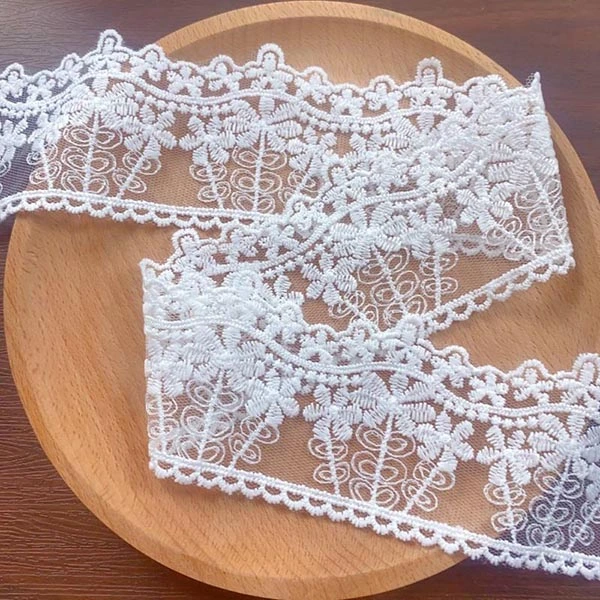 3cm வெள்ளை பால் பட்டு, பாலியஸ்டர் நீரில் கரையக்கூடிய எம்பிராய்டரி சரிகை டிரிம்